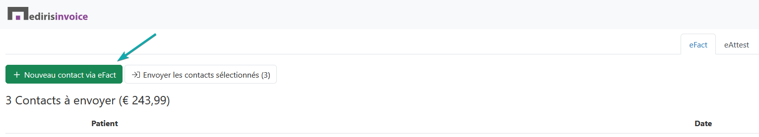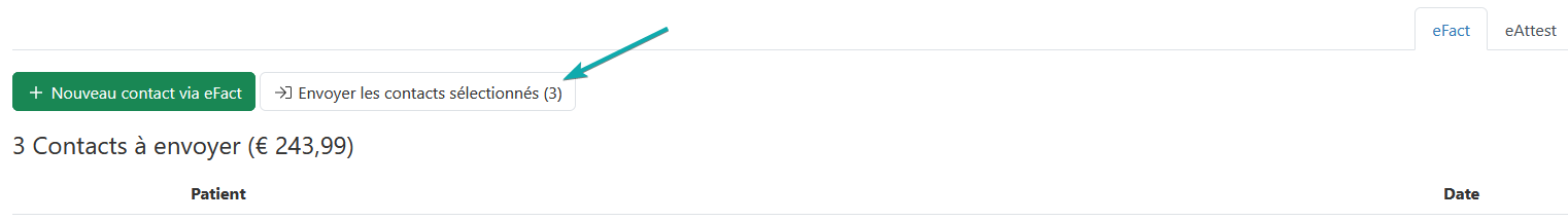 En créant un contact via eFact, vous indiquez que le patient ne vous a payé que le ticket modérateur et le supplément éventuel. Vous recevrez le montant restant de la part de la mutualité du patient.