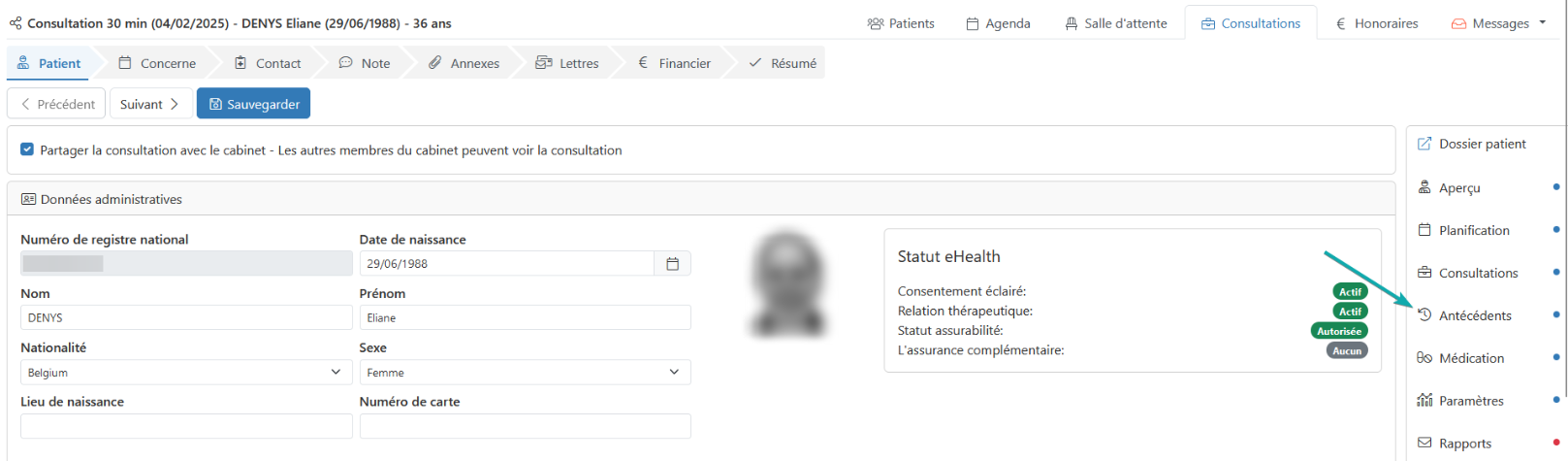 Tant dans le dossier patient que lors d'une consultation, vous pouvez enregistrer les antécédents du patient. Vous pouvez ajouter des problèmes, des facteurs de risque et des renseignements médicaux.