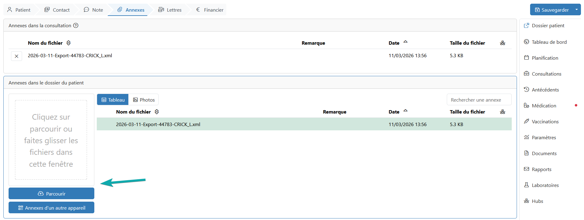 Ensuite, vous créez une consultation et vous ajoutez ce fichier en annexe.