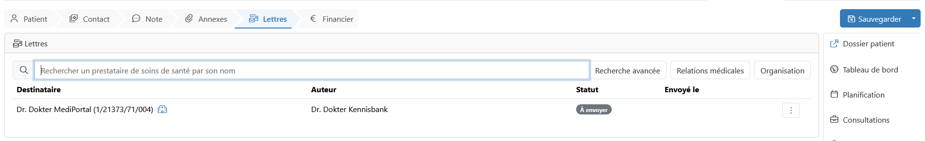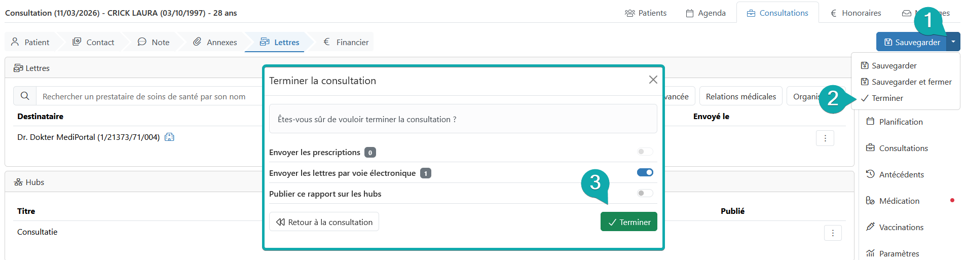 Finalement, vous terminez la consultation et vous choisissez d'envoyer la lettre. Le dossier est envoyé en annexe.