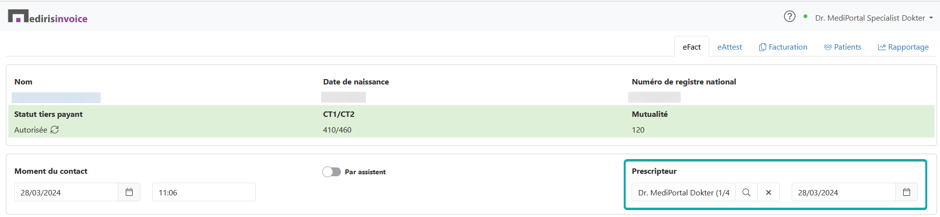 Solution : Recherchez le bon médecin en tant que prescripteur et indiquez également la date de la prescription. Ensuite, vous pouvez à nouveau terminer le contact en bas à gauche.