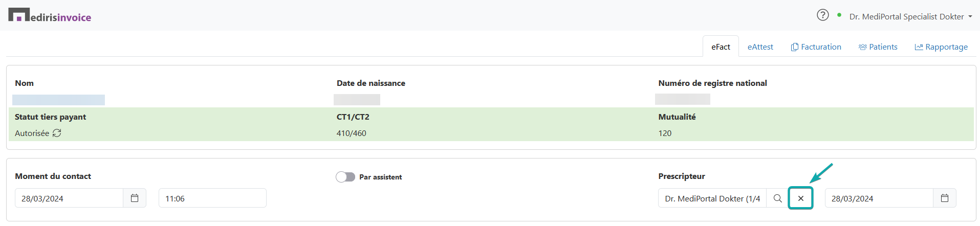 Si vous avez indiqué votre nom en tant que prescripteur, vous pouvez supprimer le prescripteur. Vos coordonnées seront ajoutées par défaut au contact.