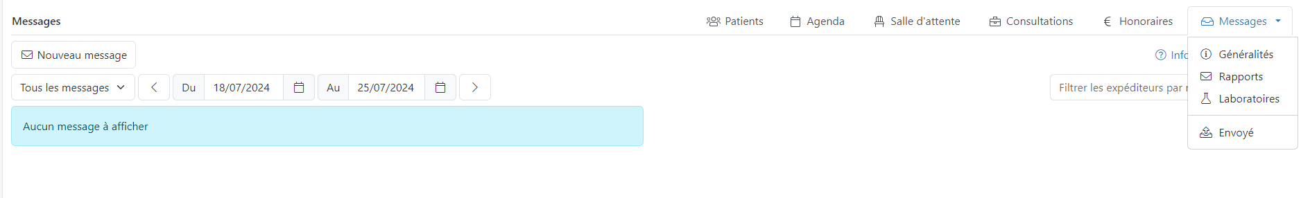 Vous trouverez ici un aperçu de tous les messages que vous avez envoyés à d'autres prestataires de soins ou hôpitaux. Cet onglet ne fonctionne que si vous avez importé votre certificat eHealth.