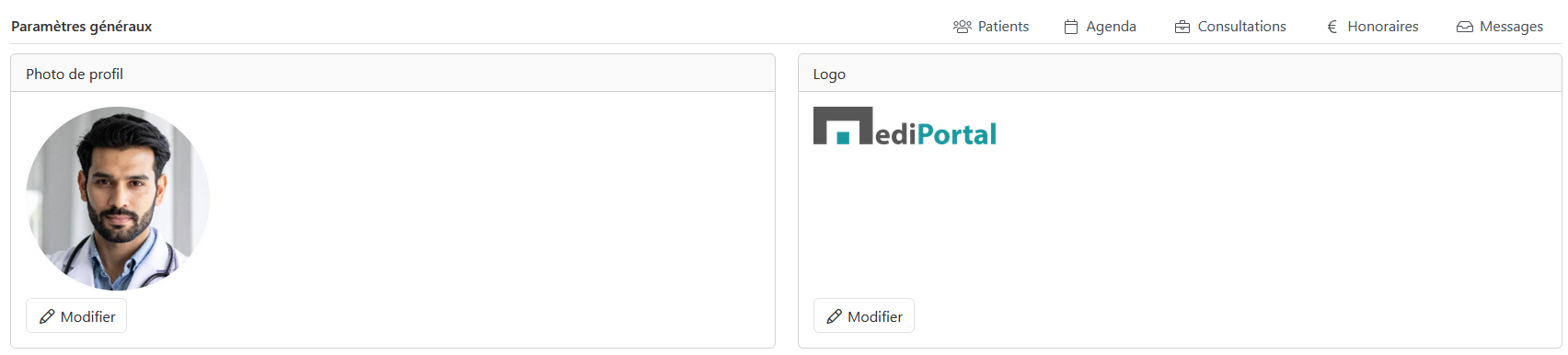 Quoi ? Importez ici votre photo de profil et votre logo. Ceux-ci seront visibles pour le patient dans l'agenda en ligne.
