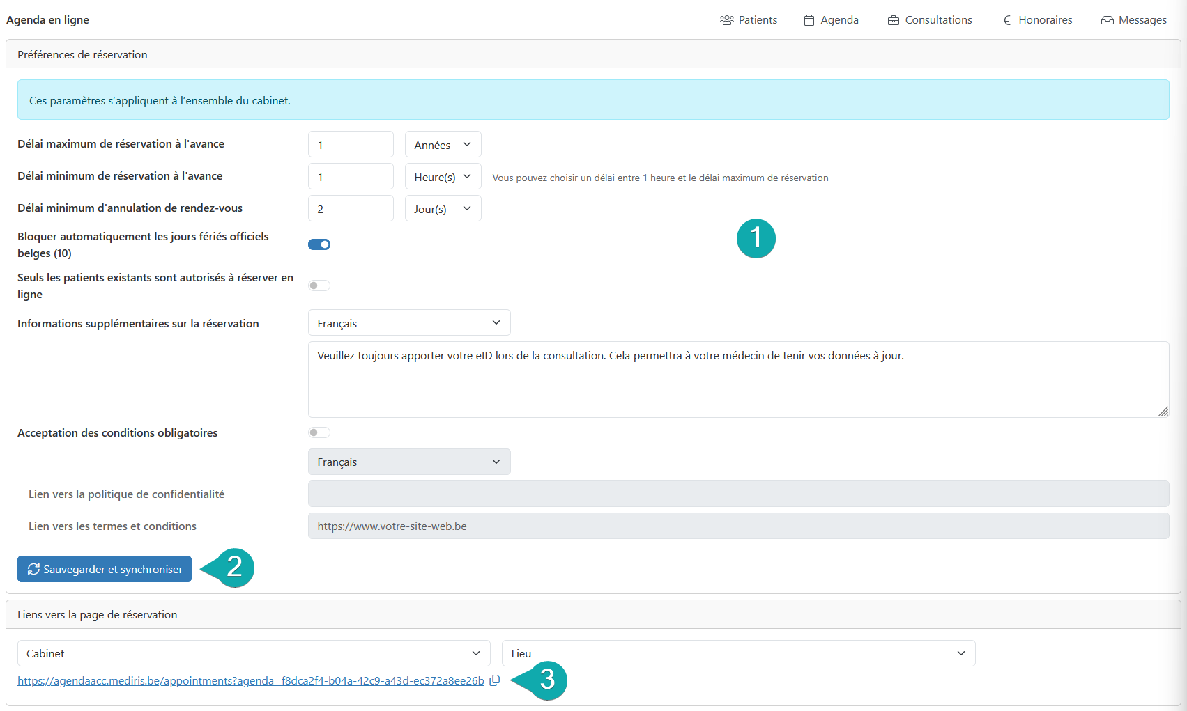 - Délai maximum de réservation à l'avance: cela indique combien de temps à l'avance le patient peut prendre un rendez-vous.