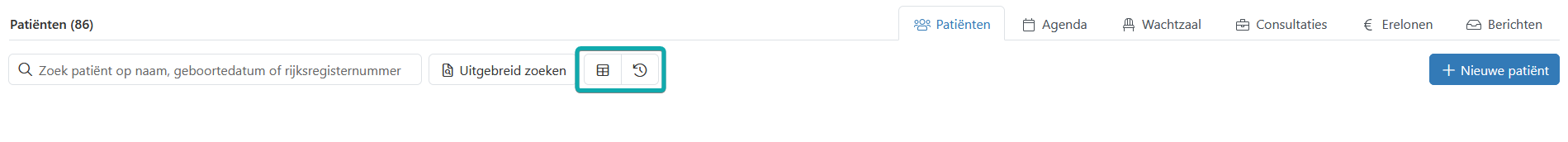 Via de tabel krijgt u de patiëntenlijst op alfabetische volgorde te zien.