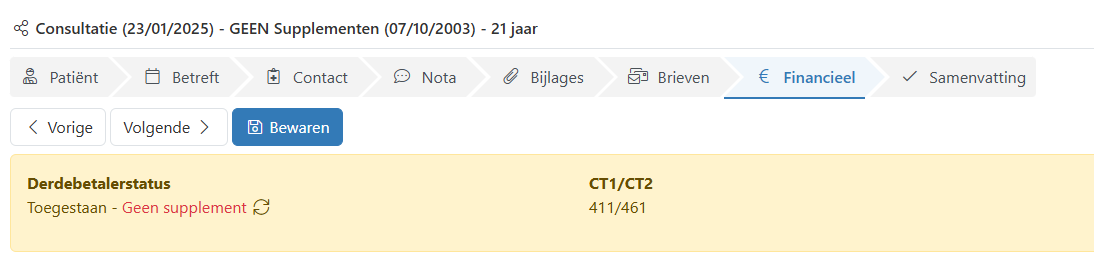 Bij patiënten waar u de melding "Geen supplement" ziet staan, mag u enkel codes uit categorieën 2, 3 en 4 gebruiken. Het is niet mogelijk om codes van de eerste categorie of zuivere supplementen in te geven.