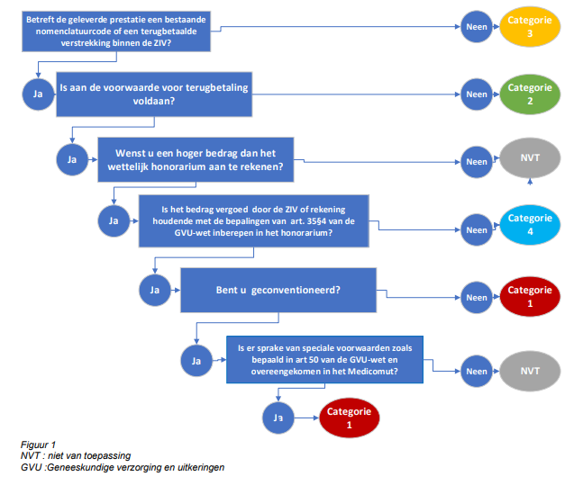 Onderstaande figuur geeft weer wanneer u een verstrekking in een bepaalde categorie moet overmaken (bron: https://www.riziv.fgov.be/SiteCollectionDocuments/FAQ_transparantiecodes.pdf)